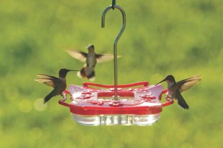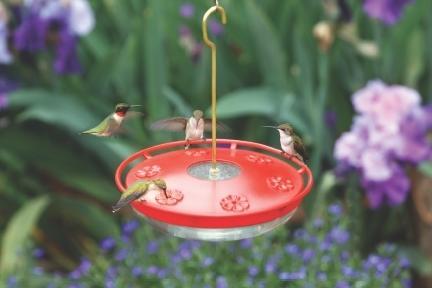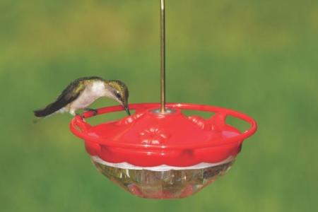 Colorful top to attract hummingbirds. Easy to clean. Can accommodate Hummingbird Nectar Guard Tips. Built in ant moat. 16oz capacity. Lifetime guarantee.