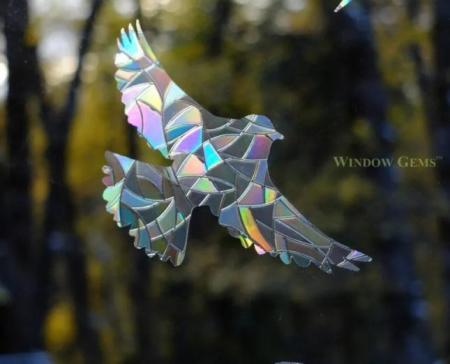 A woman owned and managed company based in Mount Shasta, California, the prismatic material that is used refracts sunlight into a kaleidoscope of changing colors which birds eyes are sensitive to, creating a warning that stops window collisions.