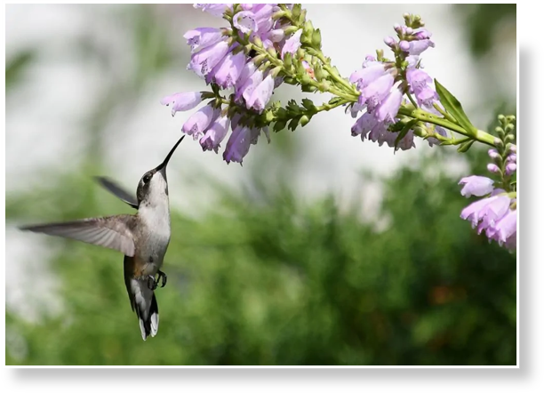 - Ruby-throated Hummingbirds migrate through Michigan throughout the month. With the adults and their young passing through on their way to southern Florida, Mexico and Central America, the number of sightings in your yard will increase. It’s a great time to see them at your Echinacea purpurea (purple coneflower), Lobelia cardinalis (Cardinal Flower), and Lobelia Siphilitica (Blue Cardinal flower) and Physostegia virginiana (Obedient plant) among others. The peak of migration for Ruby- throated Hummingbirds is late in the month of August.